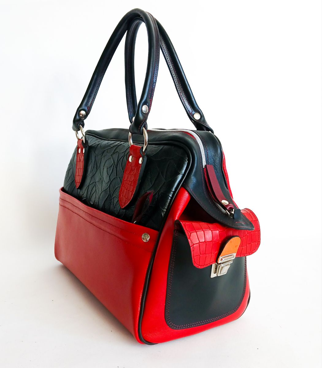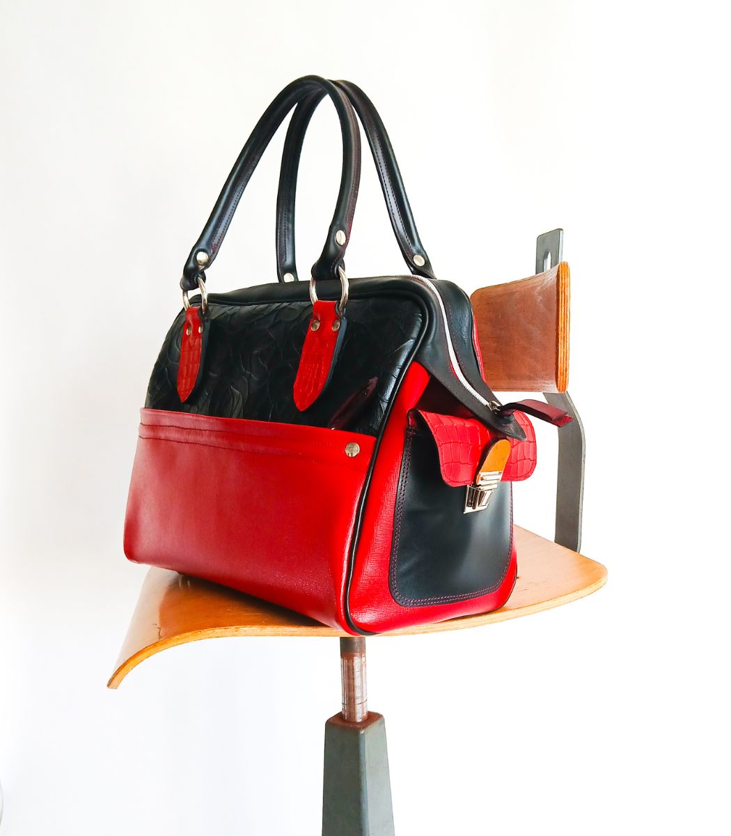 Ce grand sac en cuir rouge et noir, est un sac fourre-tout inspiré de l'iconique sac de Mary Poppins pour les femmes qui n'oublient rien... jamais ! Cet intemporel grand sac en cuir accompagne vos sorties professionnelles ou vos escapades du week-end !