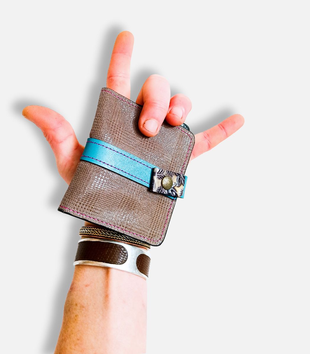 Réalisé dans de beaux cuirs colorés, il « flash » et peut se retrouver facilement au fond du sac.