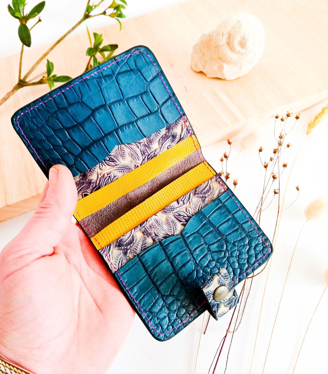 Ce porte-cartes artisanal en cuir pour femme peut être fabriqué selon vos souhaits avec d’autres cuirs & effets de texture.